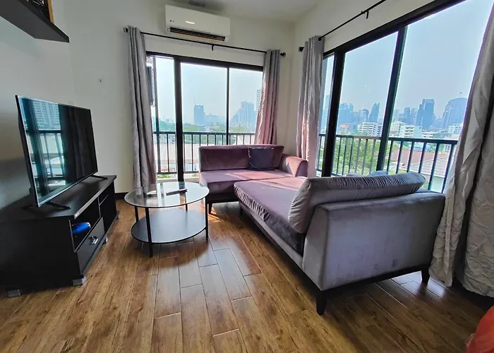 Die 48 m² große Ferienwohnung Skyline View - Bts Thong Lo Bangkok liegt 4 km vom Lumphini-Park und in 500 Meter Entfernung von der U-Bahnstation Thong Lo. Etwa 9 Gehminuten vom Nationalen Wissenschaftszentrum für Bildung entfernt bietet die 1-Zimmer-Apartments einen Swimmingpool für die Gäste.